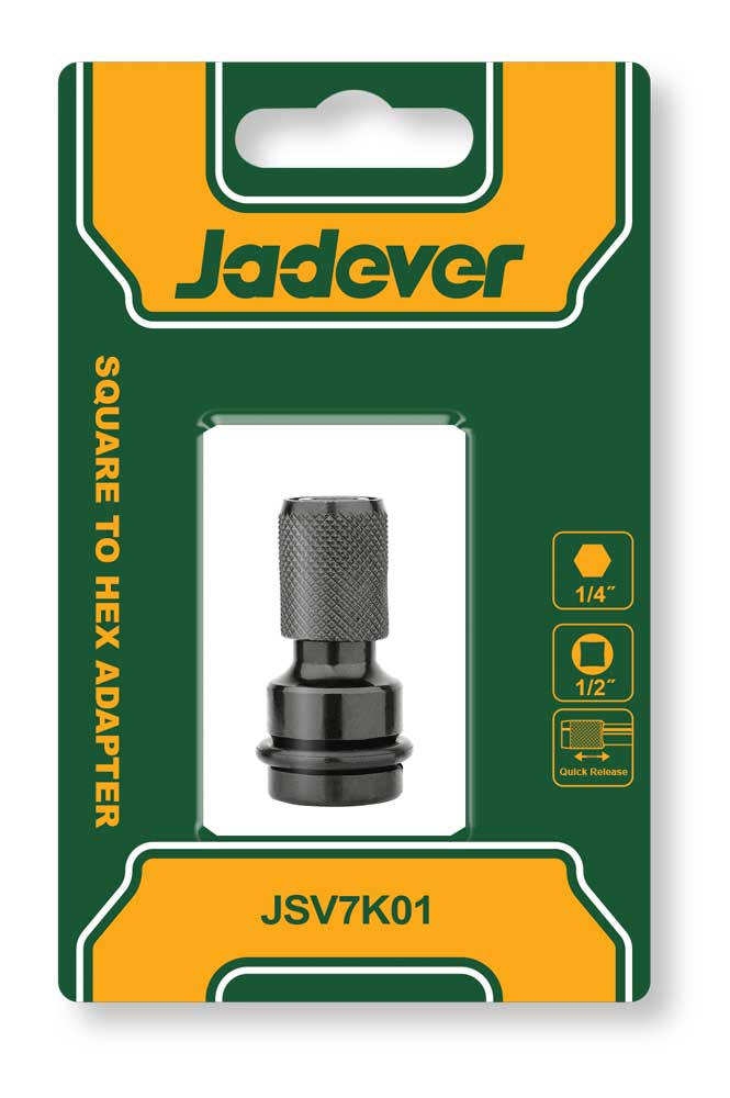 Adattatore da 1/2” quadro a 1/4” esagonale con rilascio rapido.