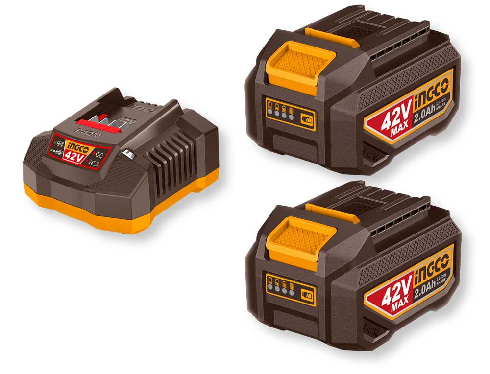n. 2 batterie agli ioni di litio da 2,0 Ah (FBLI42201E) con indicatore LED di carica della batteria
