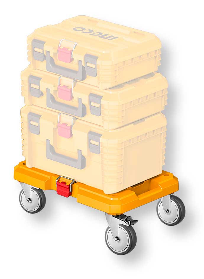 Carrello compatibile con cassette PBXS101 - PBXS102 - PBXS103, possono essere impilate per un facile trasporto.