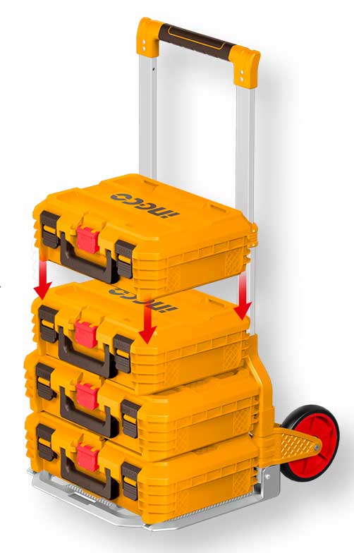 Carrello compatibile con cassette impilabili PBXS101 - PBXS102 - PBXS103, per un facile trasporto.