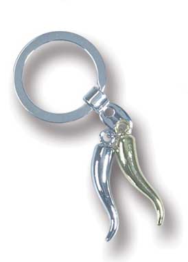 Portachiavi con doppio cornetto mini portafortuna assortiti