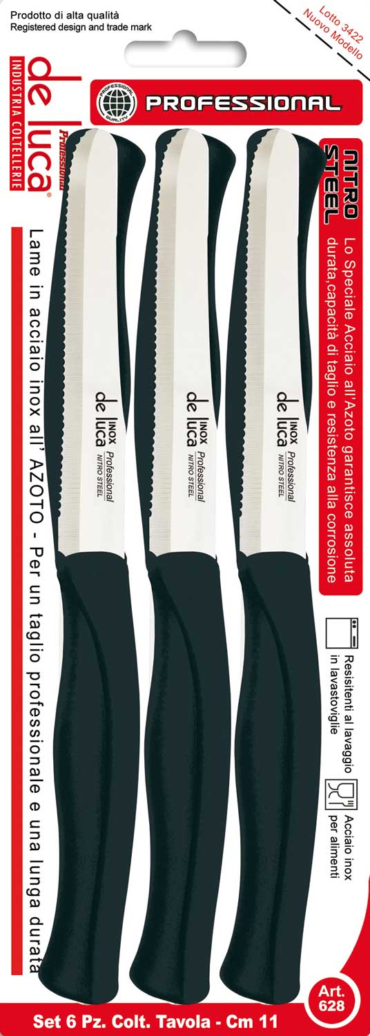 Coltelli da tavola set da 6 pezzi punta tonda linea professional nero