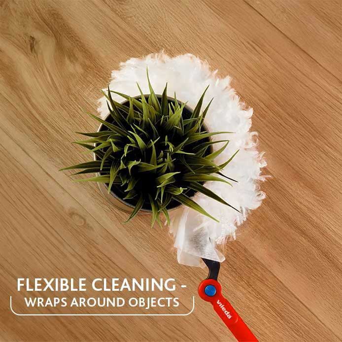 Cattura fino a 3 volte più polvere rispetto ai piumini tradizionali e raggiunge ogni angolo grazie alla sua testina flessibile.