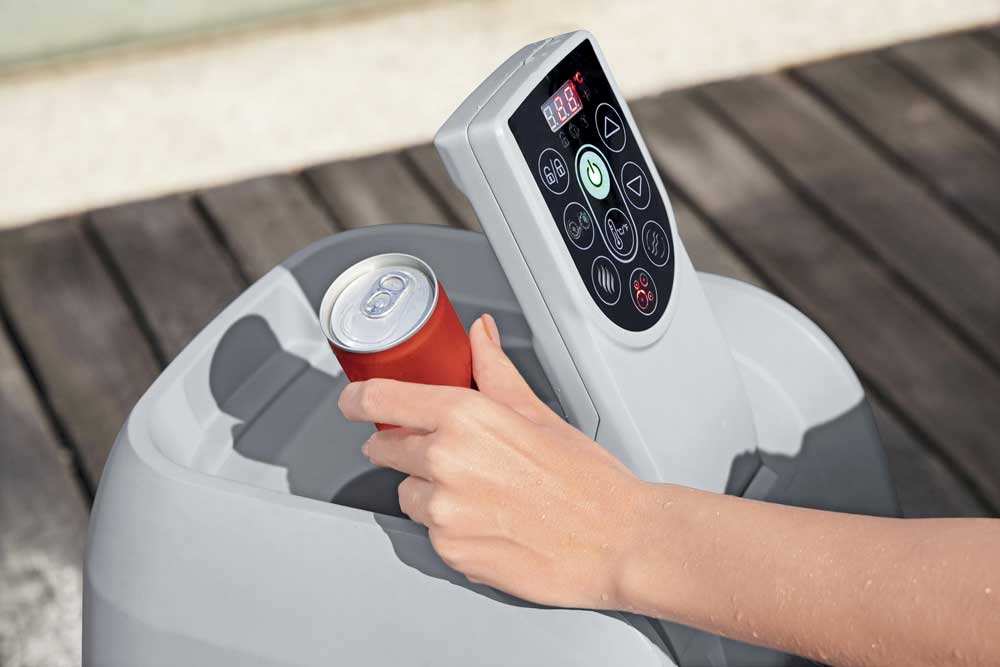 La pompa della spa dispone anche di un comodo vano portabicchieri per bibite e snack