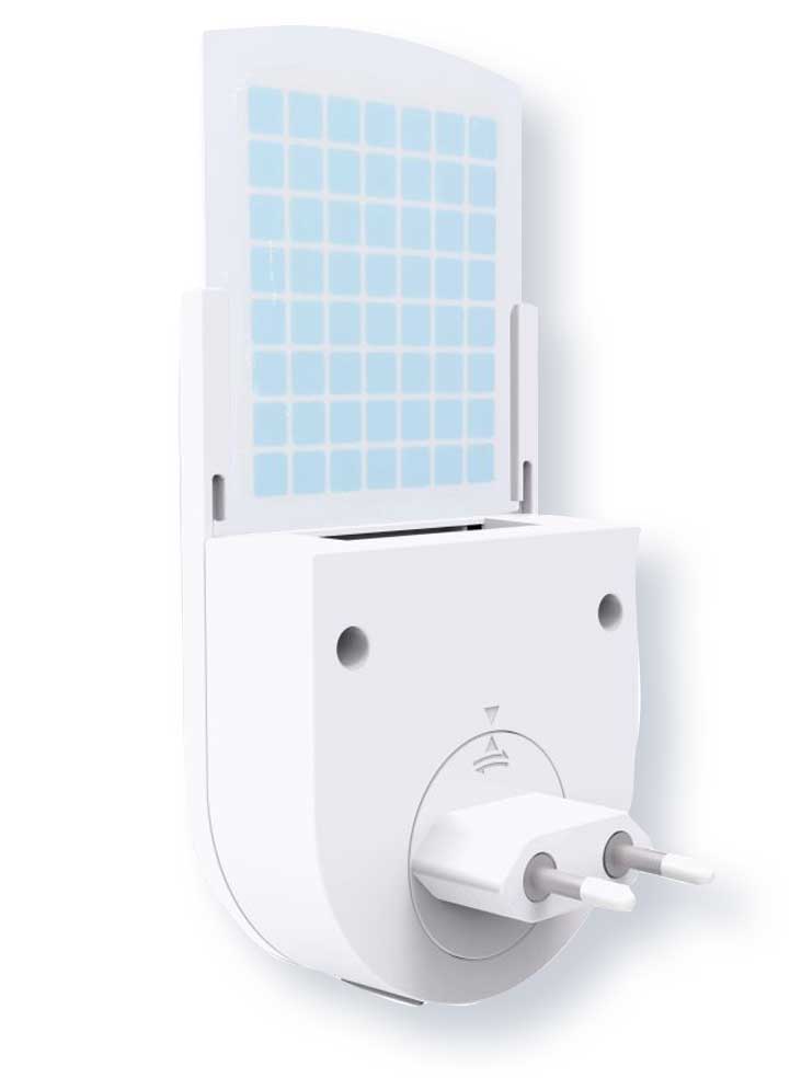 Attira con lampada UV e cattura senza l’uso di prodotti chimici, con la carta adesiva, zanzare, mosche, moscerini, vespe, cimici, farfalle alimentari in ambienti domestici (cucina, camera, salotto, bagno e dispensa).