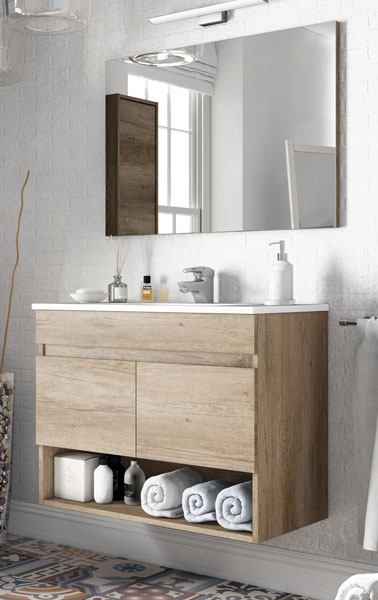 Mobile bagno cm.80 sospeso rovere nordico 2antine 1ripiano