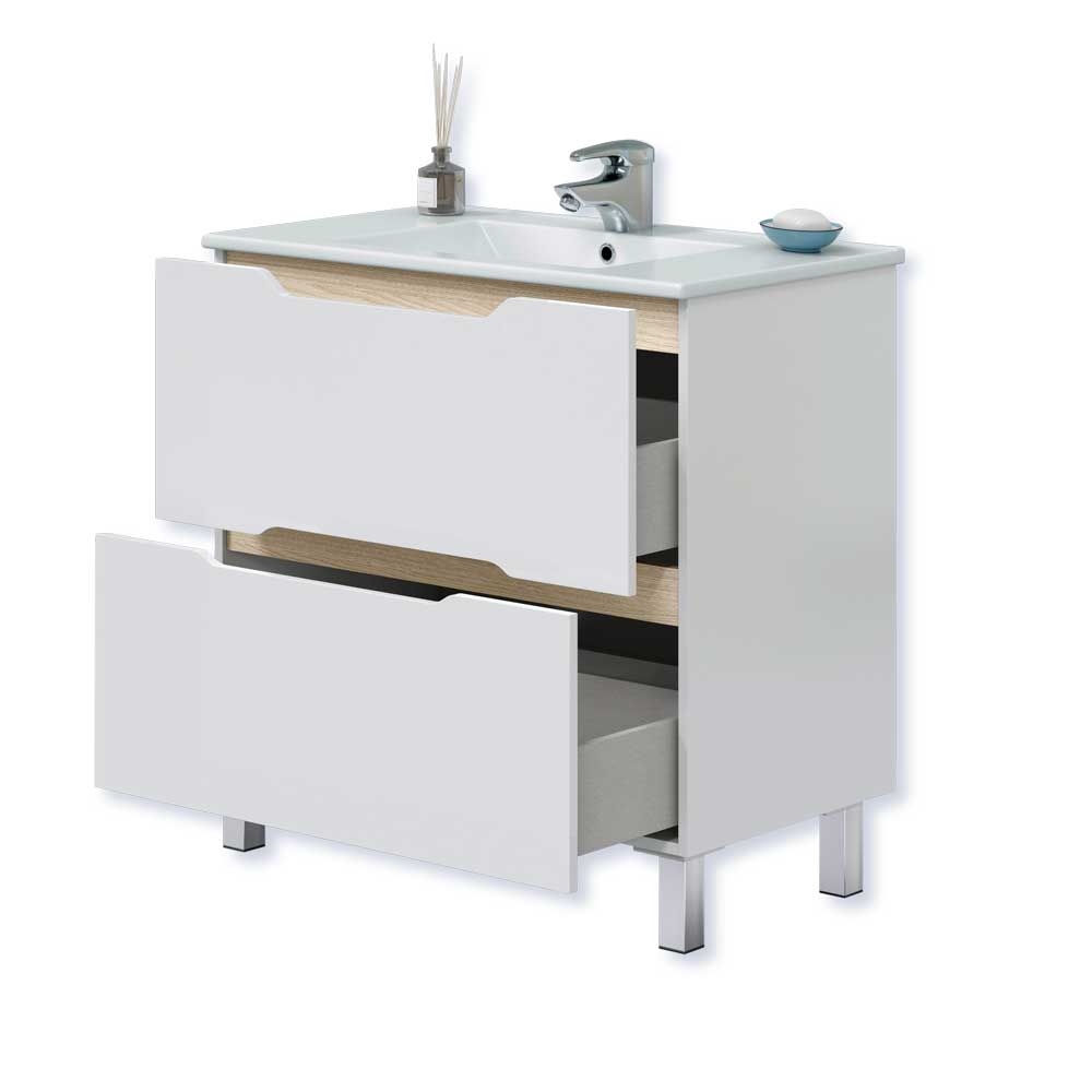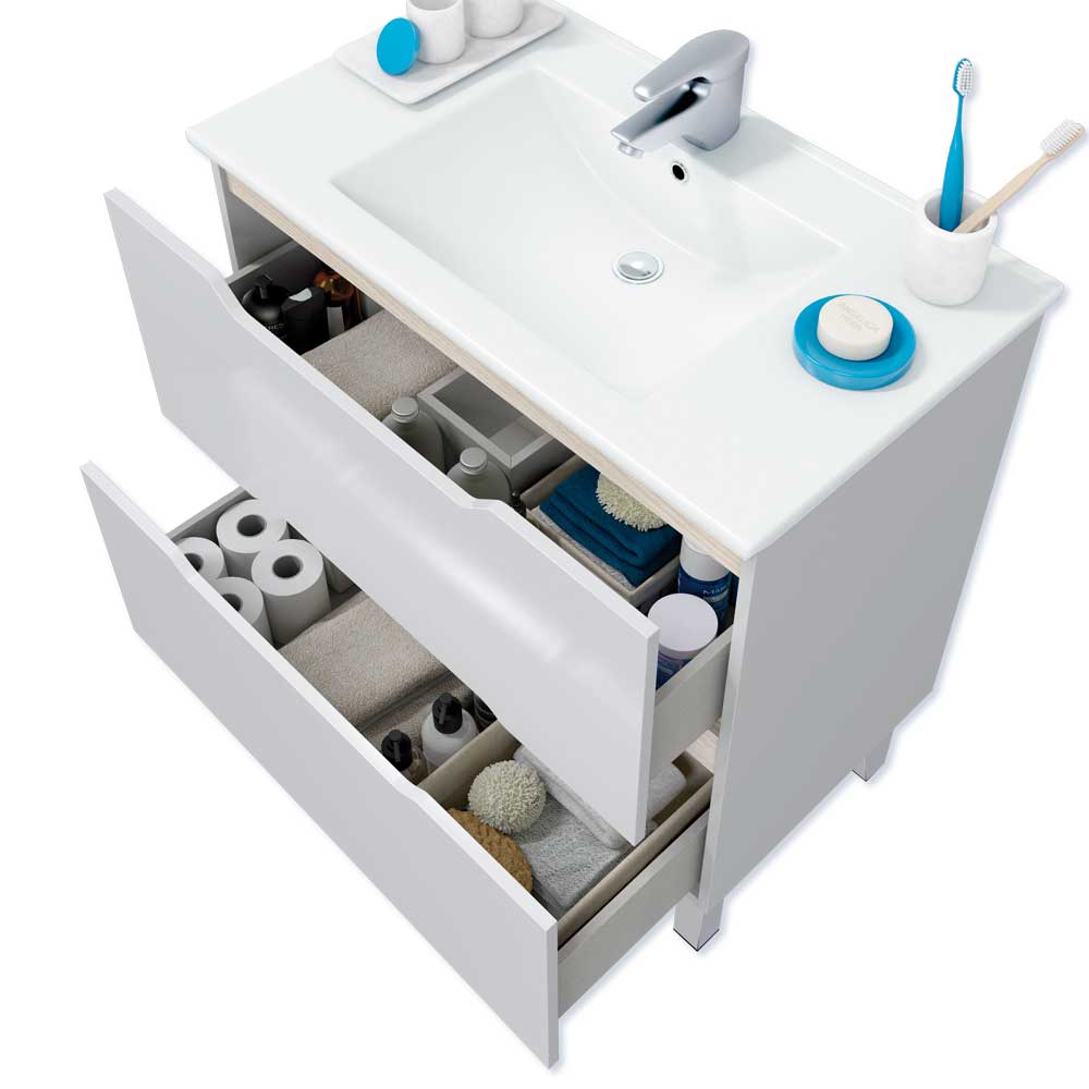 Mobile bagno con 2 cassetti completo di lavello in ceramica e specchio.