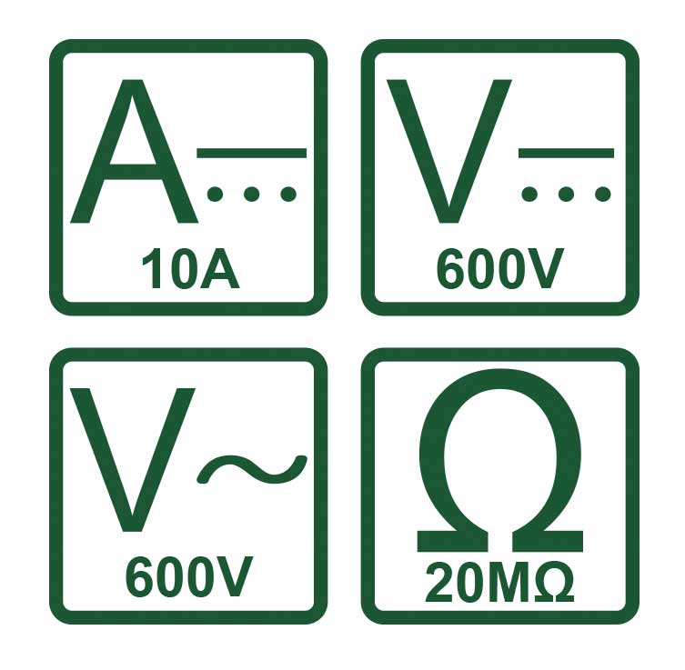 Resistenza 200 Ω/2 kΩ/20 kΩ/200 kΩ/2 MΩ/20 MΩ.