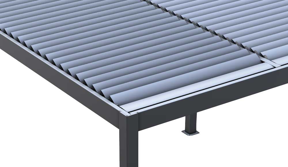 Struttura e lamelle in acciaio con verniciatura per esterno.
