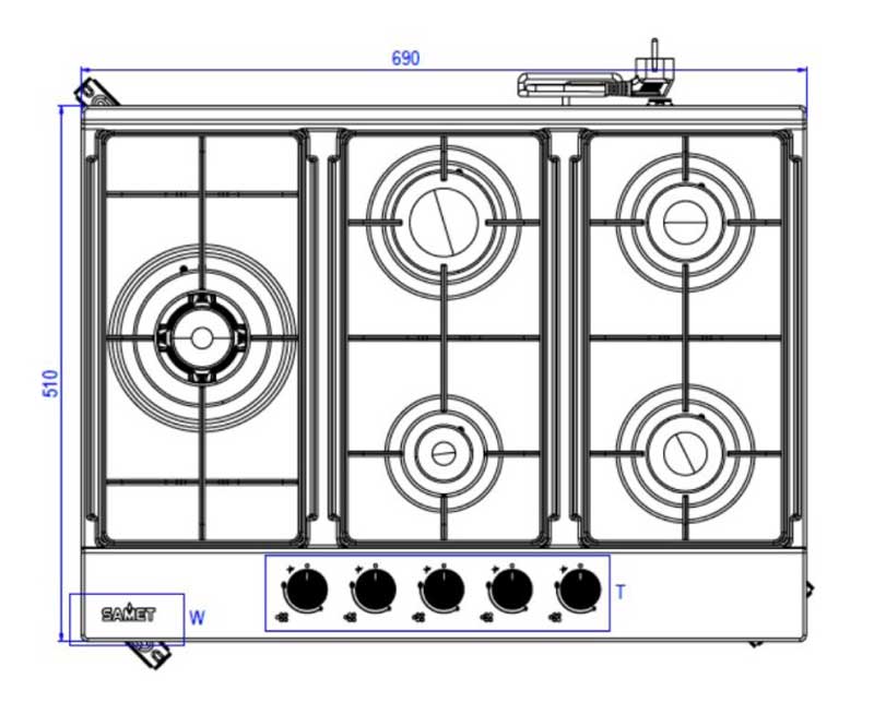 Piano Cottura Inox Ercole 70CM 5 Fuochi