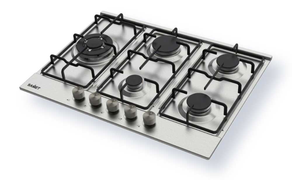 Piano cottura a gas dotato di 5 fuochi disposti per garantire massima praticità e versatilità in cucina.
