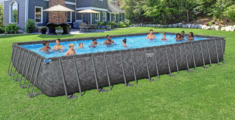 Piscina rigida rettangolare, struttura portante in acciaio galvanizzato antiruggine extra resistente.