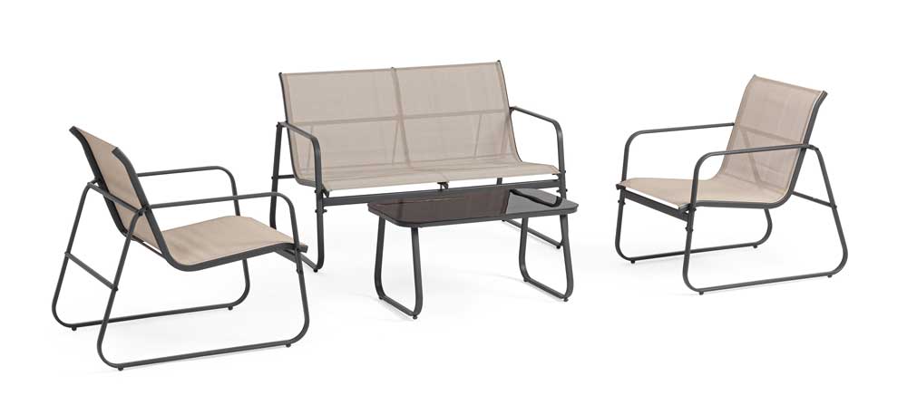 Salotto con struttura in acciaio, verniciato a polvere (poliestere).