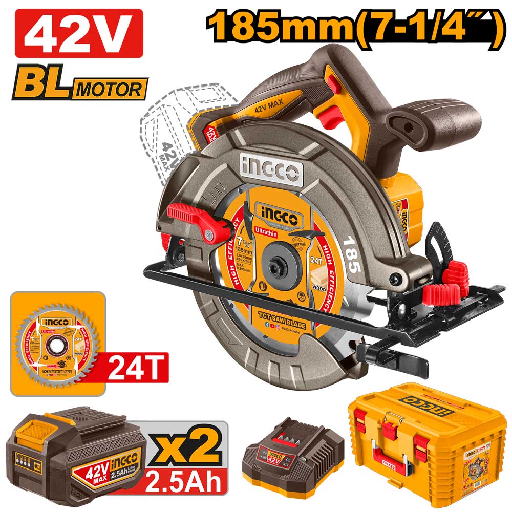Sega Circolare a Batteria 42V 185MM 2 Batterie 2.5Ah+car.+valigetta