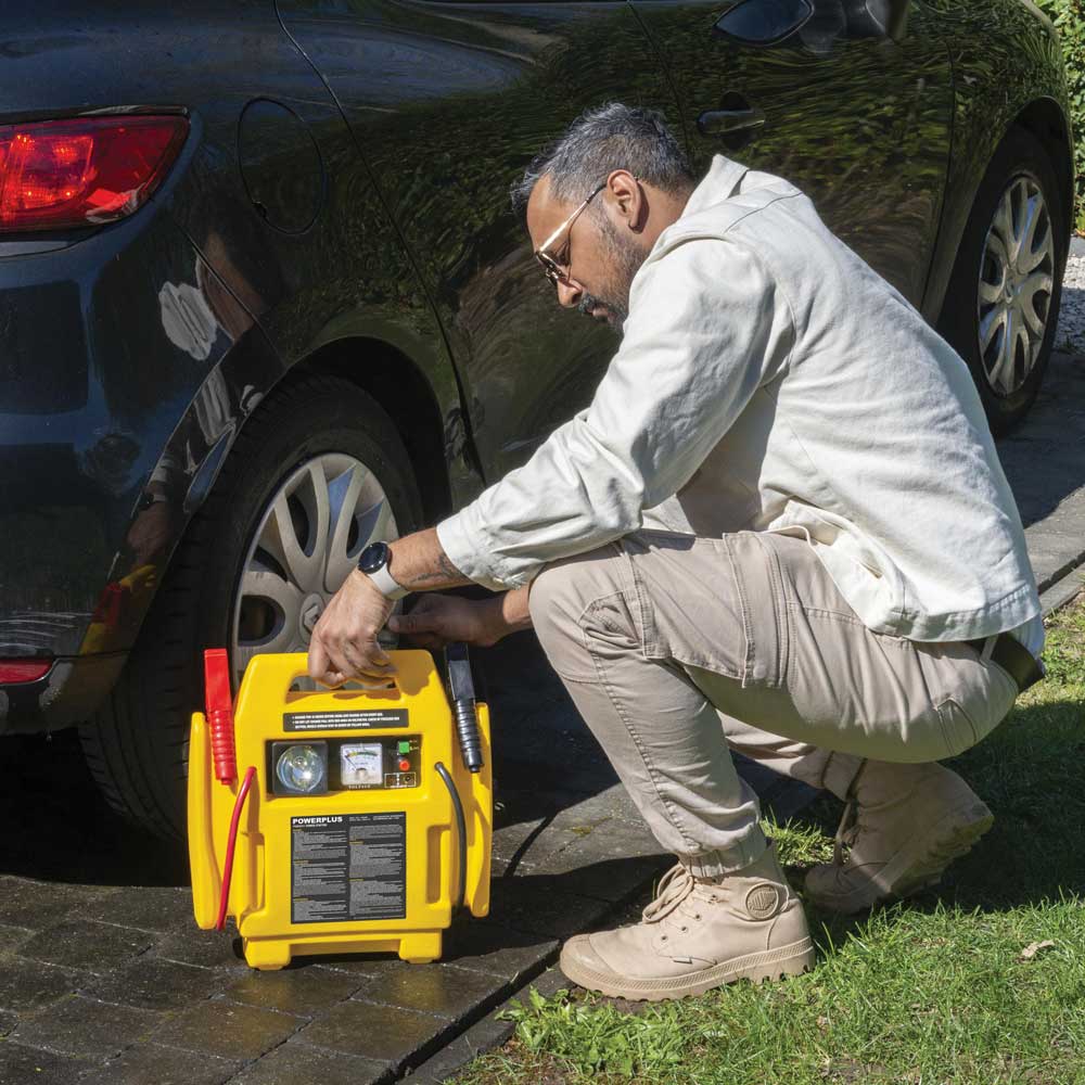 Powerplus 4 in 1 è un avviatore di emergenza, un alimentatore, un compressore e fornisce anche illuminazione di emergenza.